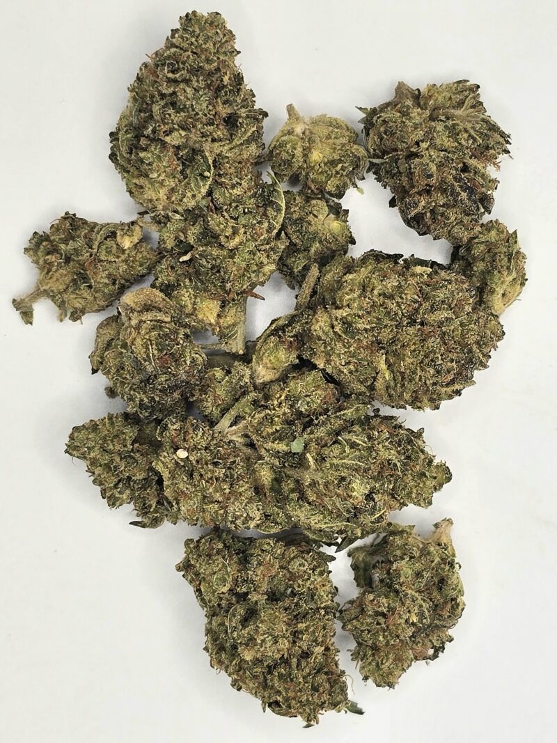 Dark Phantom is an indica dominant hybrid strain (70% indica/30% sativa) created through crossing the iconic Cherry Pie X Granddaddy Purple strains. A favorite among breeders and patients alike for its high potency level and perfect nighttime effects, Dark Phantom is a great choice for any lazy evening when you need a little extra help to get to sleep. The high starts with a slow build, filling your brain with an expansive and heady tingle that quickly numbs the brain and leaves you feeling out of touch with the world around you, although totally happy about it. This tingle will soon spread its warming tendrils throughout your entire body, lulling your physical form into a state of pure relaxation and ease that has you feeling pretty immovable at times. This combination can quickly turn sedative, leaving you dozing off before you know it. Combined with its high 19-20% average THC level and 1-2% CBD level, these effects make Dark Phantom a great choice for treating conditions such as chronic pain, insomnia, chronic stress, arthritis and depression or mood swings. This bud has a sweet and fruity cherry berry flavor with a lightly spicy and nutty kushy aroma to match. Dark Phantom buds have long and narrow pepper-shaped emerald green nugs with deep purple undertones, thin dark amber hairs and a coating of tiny, dark purple-tinted white crystal trichomes.